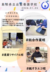 サンラポーむらくもで昼食を食べた後、島根県観光物産館で買い物をしました。出かける前に決めた約束を守って、楽しい校外学習になりました。