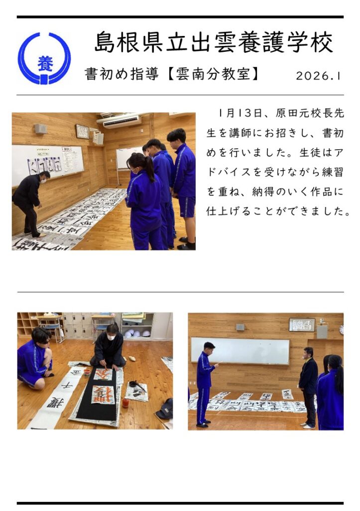 【雲南分】1/13 書初め指導新着!!